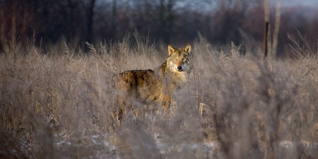 File photo - A wolf stands in a field in the 18 mile exclusion zone around the Chernobyl nuclear reactor near the village of Babchin some 217 miles southeast of Minsk, Feb. 1, 2008. (REUTERS/Vasily Fedosenko)
