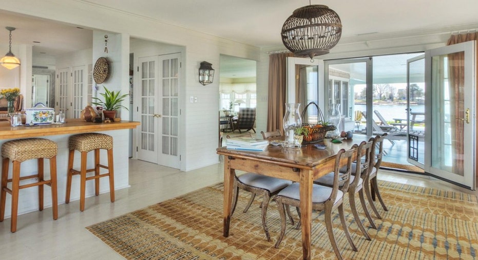 The home spans nearly 4,000 square feet with a pretty open floor plan. It is comprised of positioned large windows and a wraparound veranda for 360-degree views of Long Island Sound, according to the listing.
