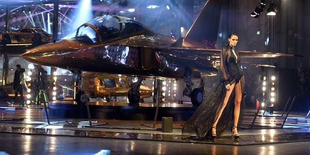 Plein’s show also included a fighter jet, boat and cars, making for a “military-meets-decadence air,” the New York Post reported. Rapper Tyga performed and personalities Maye Musk, Cameron Dallas and Gigi Gorgeous also walked the runway.