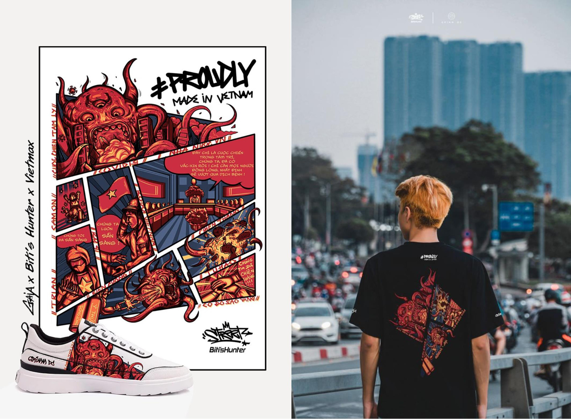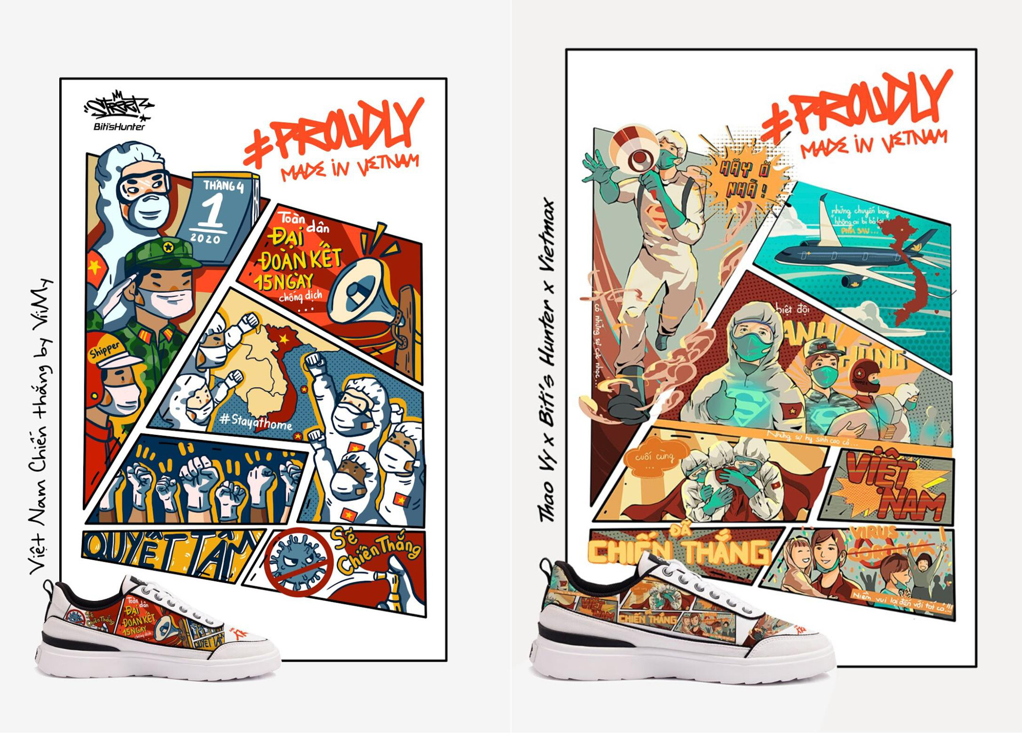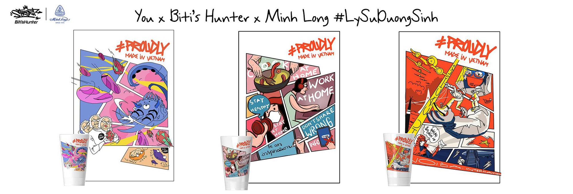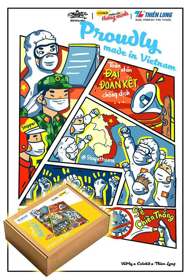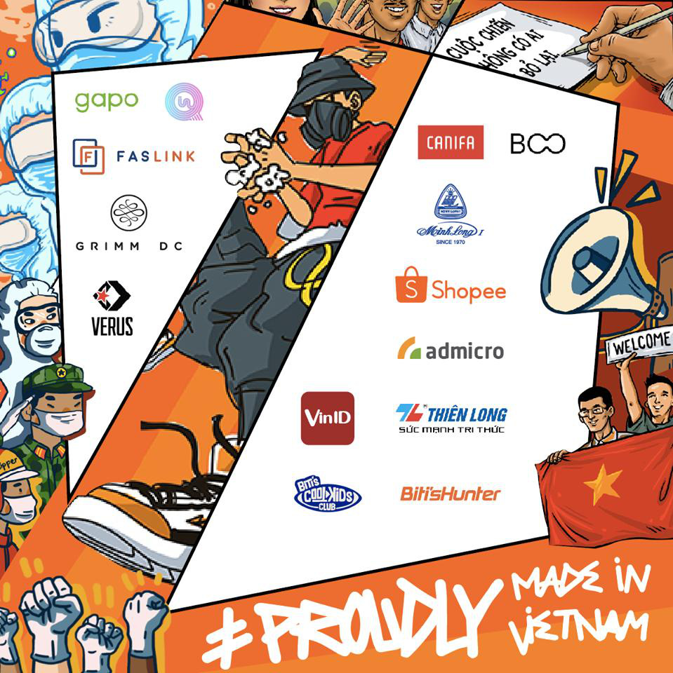 Chung tay cùng với Biti’s trong chiến dịch lần này là rất nhiều các thương hiệu để #ProudlyMadeinVietnam không chỉ gắn liền với các sản phẩm chất lượng mà còn gửi gắm niềm tự hào của các doanh nghiệp Việt Nam. Từ bản vẽ và những câu chuyện tình người giữa tâm bão, các họa sĩ đã đưa thiết kế lên nhiều sản phẩm: những đôi giày Biti’s, những chiếc áo của Canifa, Boo, ly sứ Minh Long, bộ bút viết Thiên Long…