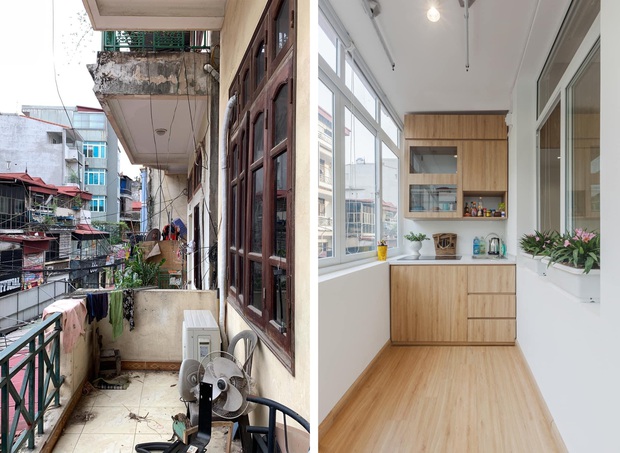 Lí do là vì căn nhà này vốn là một tầng của căn nhà ống 3 tầng được xây dựng từ những năm 2000 nên cơ sở vật chất rất xuống cấp, chật chỗi và cũ nát. Vì mặt sàn chỉ với 33m2 nên phải tính toán thật chi ly từng mét vuông và tận dụng không gian triệt để. Căn nhà sau khi F5 đã được lột xác vô cùng ấn tượng. Nhìn ảnh before - after mà ai cũng phải trầm trồ là quá "đã mắt" trước thiết kế rất khéo léo và thông minh.