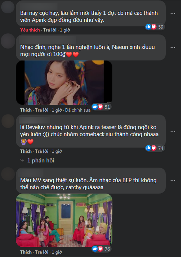 Rất nhiều bình luận khen ngợi sản phẩm mới của Apink trên mạng xã hội.